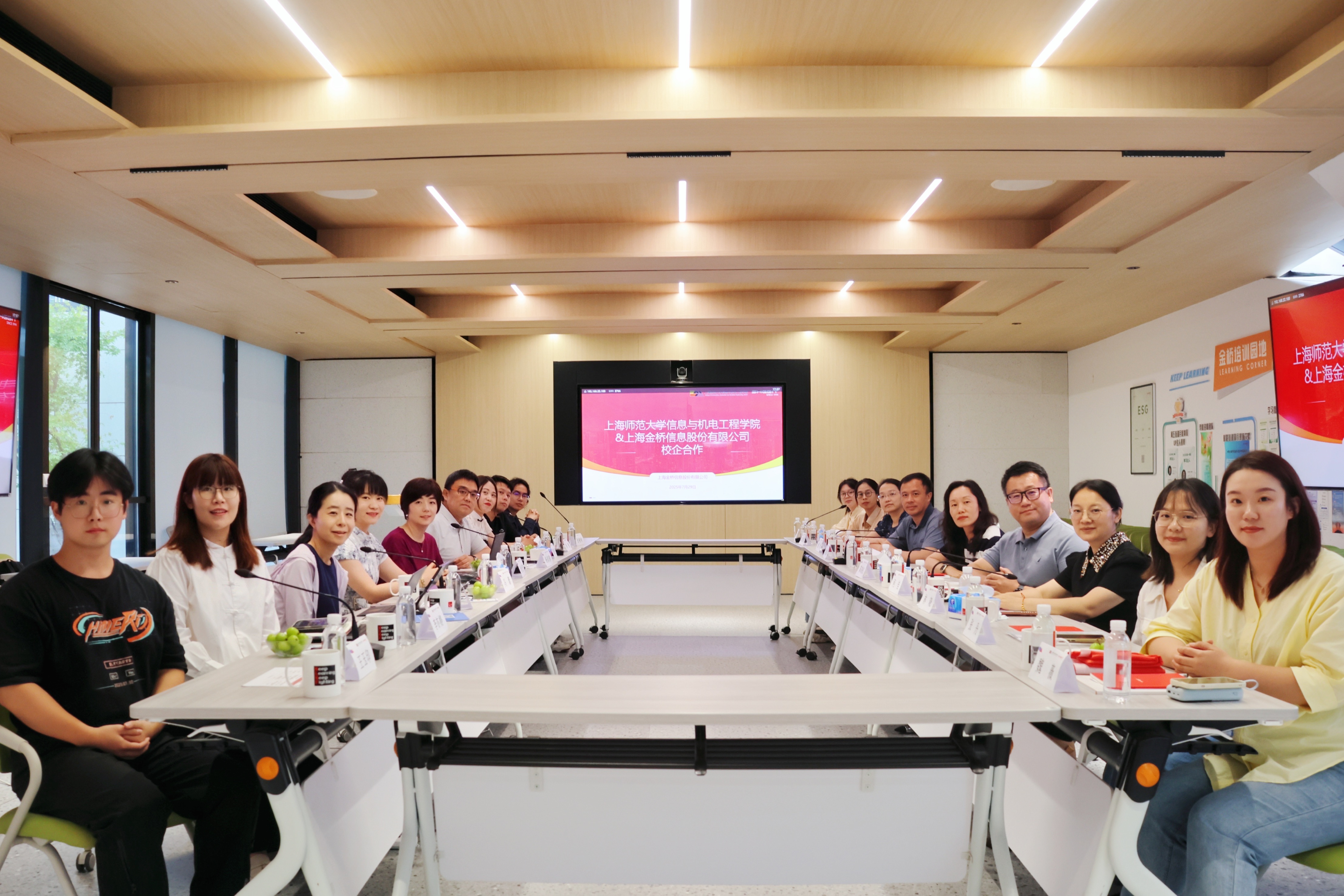 2025729日,上海師范大學(xué)副校長(cháng)蔣明軍率信息與機電工程學(xué)院黨委書(shū)記陳曉虹、副院長(cháng)潘建國等學(xué)院領(lǐng)導及師生代表一行,蒞臨金橋信息總部參觀(guān)交流。雙方就深化校企合作、拓展學(xué)生實(shí)習就業(yè)、探索AI領(lǐng)域協(xié)同創(chuàng )新以及推進(jìn)黨支共建等議題進(jìn)行了深入探討,共謀未來(lái)發(fā)展。